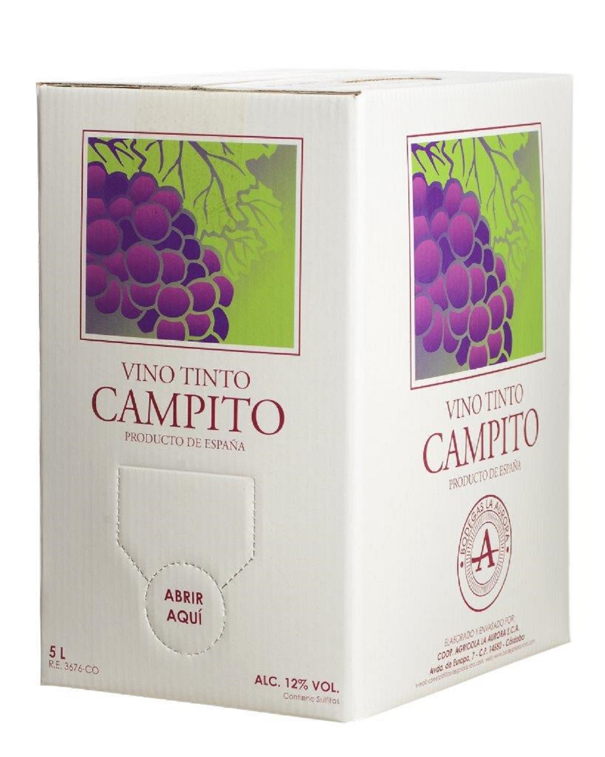Vino Tinto Joven Campito es un vino elaborado por Bodegas La Aurora y producido con uvas de las variedades Syrah, Tempranillo y Cabernet Sauvignon, este vino está elaborado con el mosto de la última cosecha y no presenta crianza.
